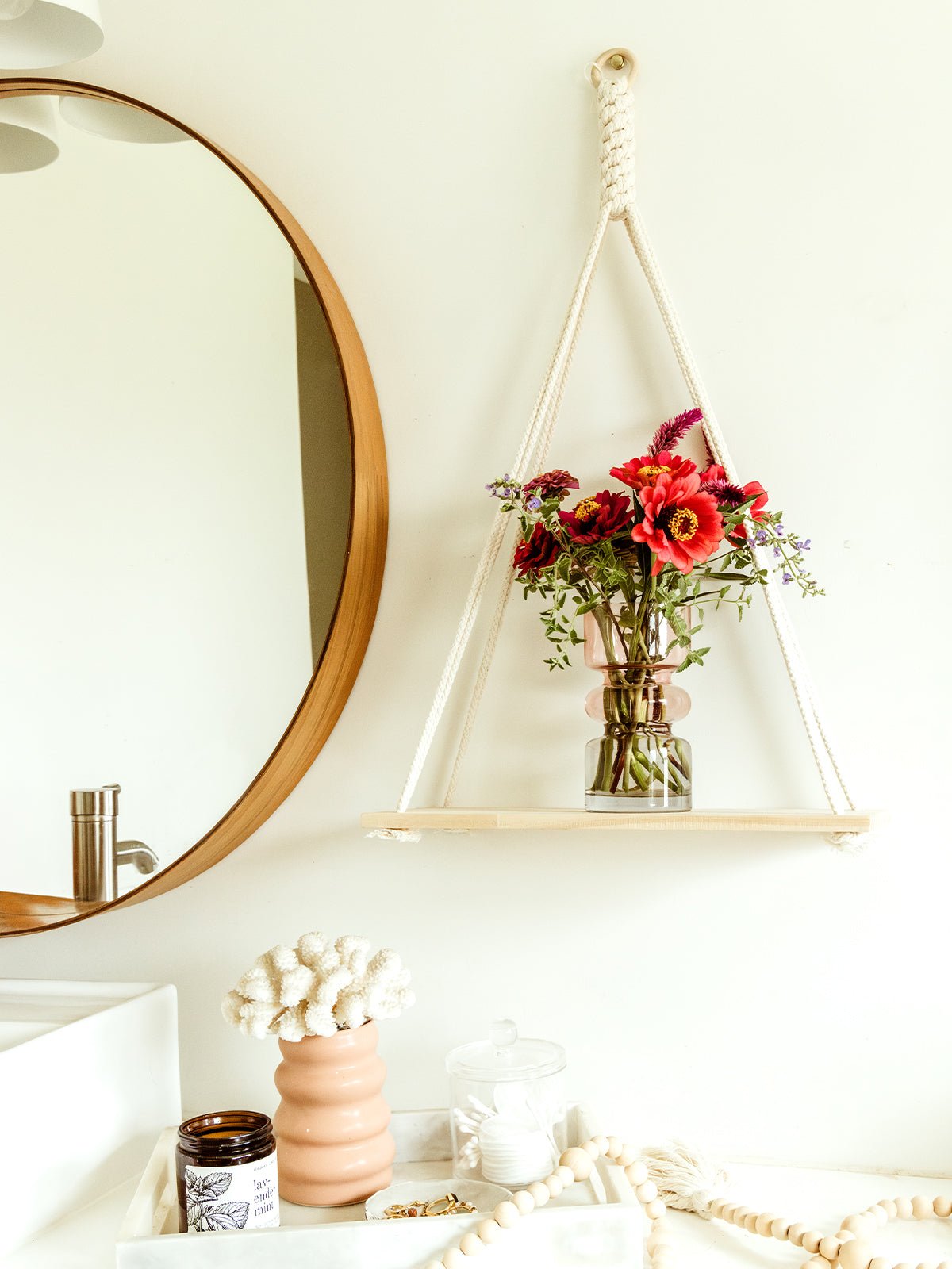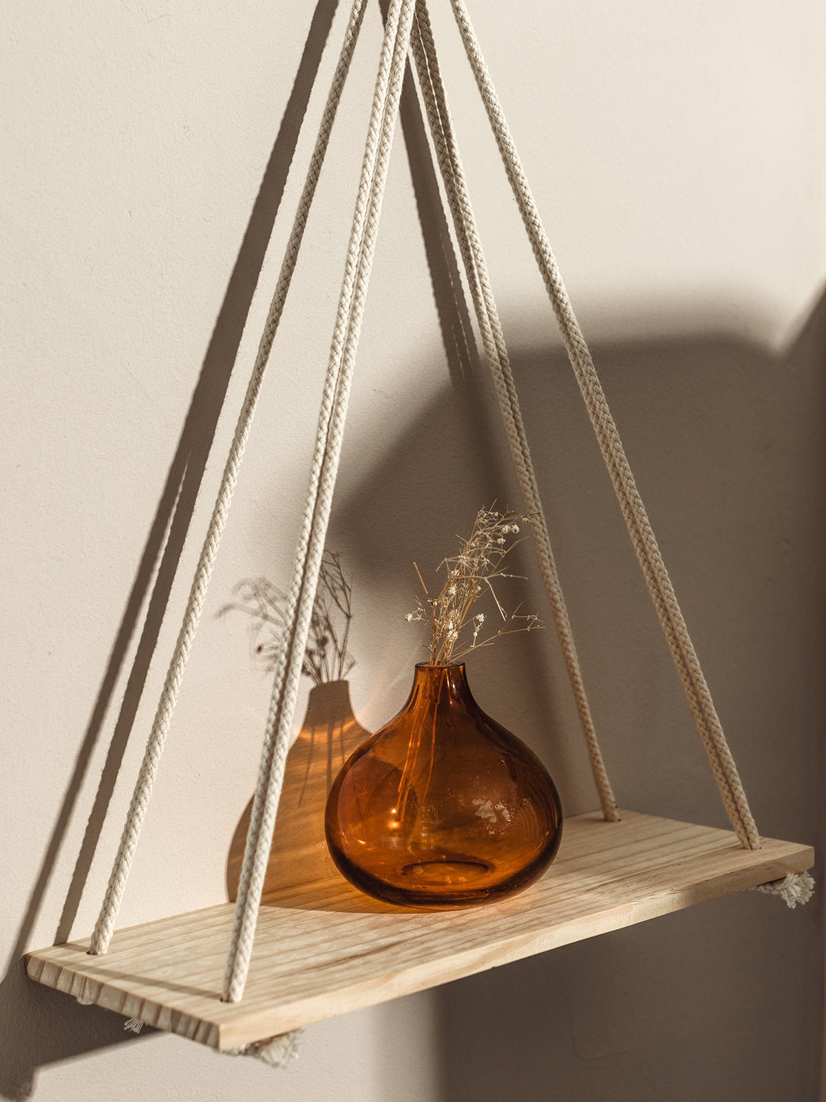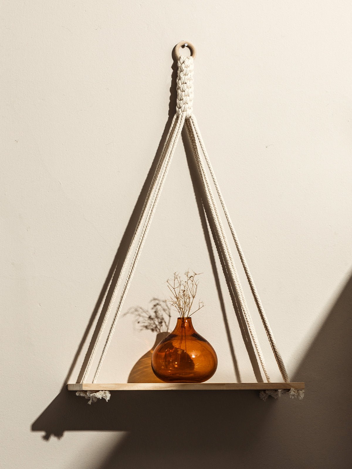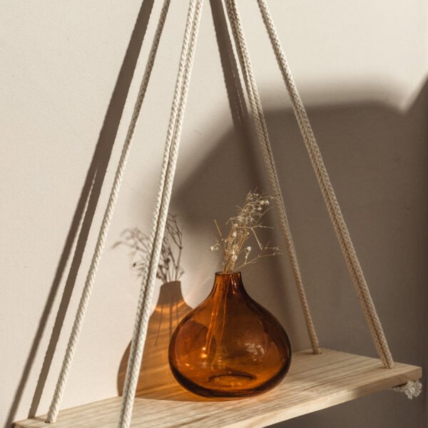 The Dignity Hanging Shelf is a beautifully handcrafted. fair-trade shelf that combines functionality with minimalist elegance. Made from 100% natural cotton rope and a neutral blonde wood plank. this shelf is perfect for displaying your most treasured trinkets. small potted plants. or framed photos. The unique dignity knot. hand-knotted by skilled artisans. adds beautiful artistry to the piece. making it an ideal addition to your home.